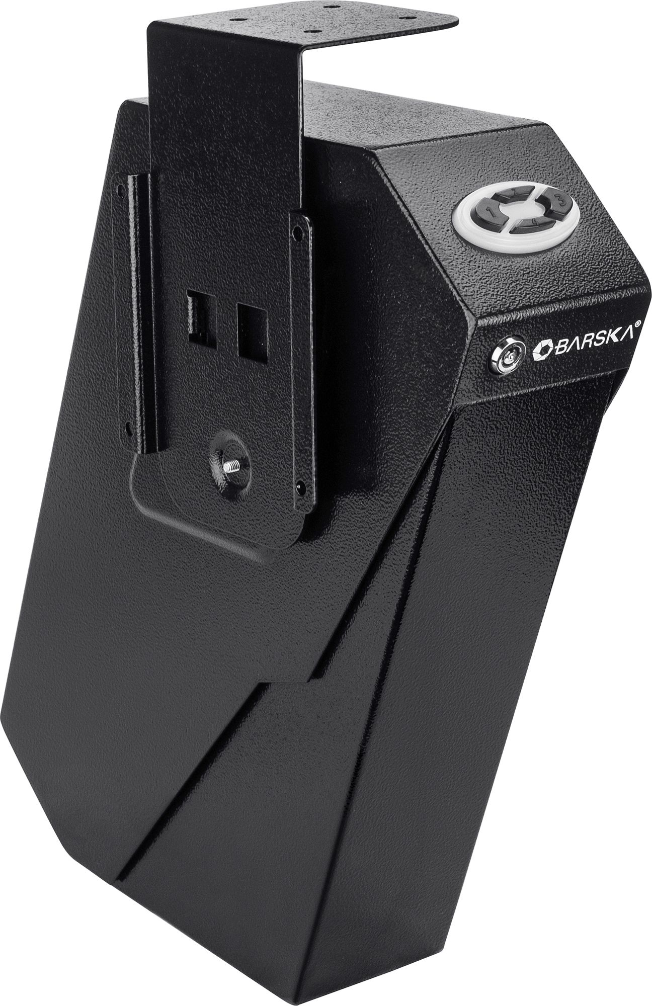 Heritage Security Quick Access Personal Safe | A padded shelf and bottom protect valuables and the slender design fits in tight spots. A security alarm will sound if an incorrect combination is entered 3. Quick and quiet access with strong gas strut. Security safes and personal safes are perfect for use in dormitories, executive offices these safes are lightweight and are meant to be bolted onto a larger structure for more secure storage. Includes mounting hardware to secure to shelf for greater security.