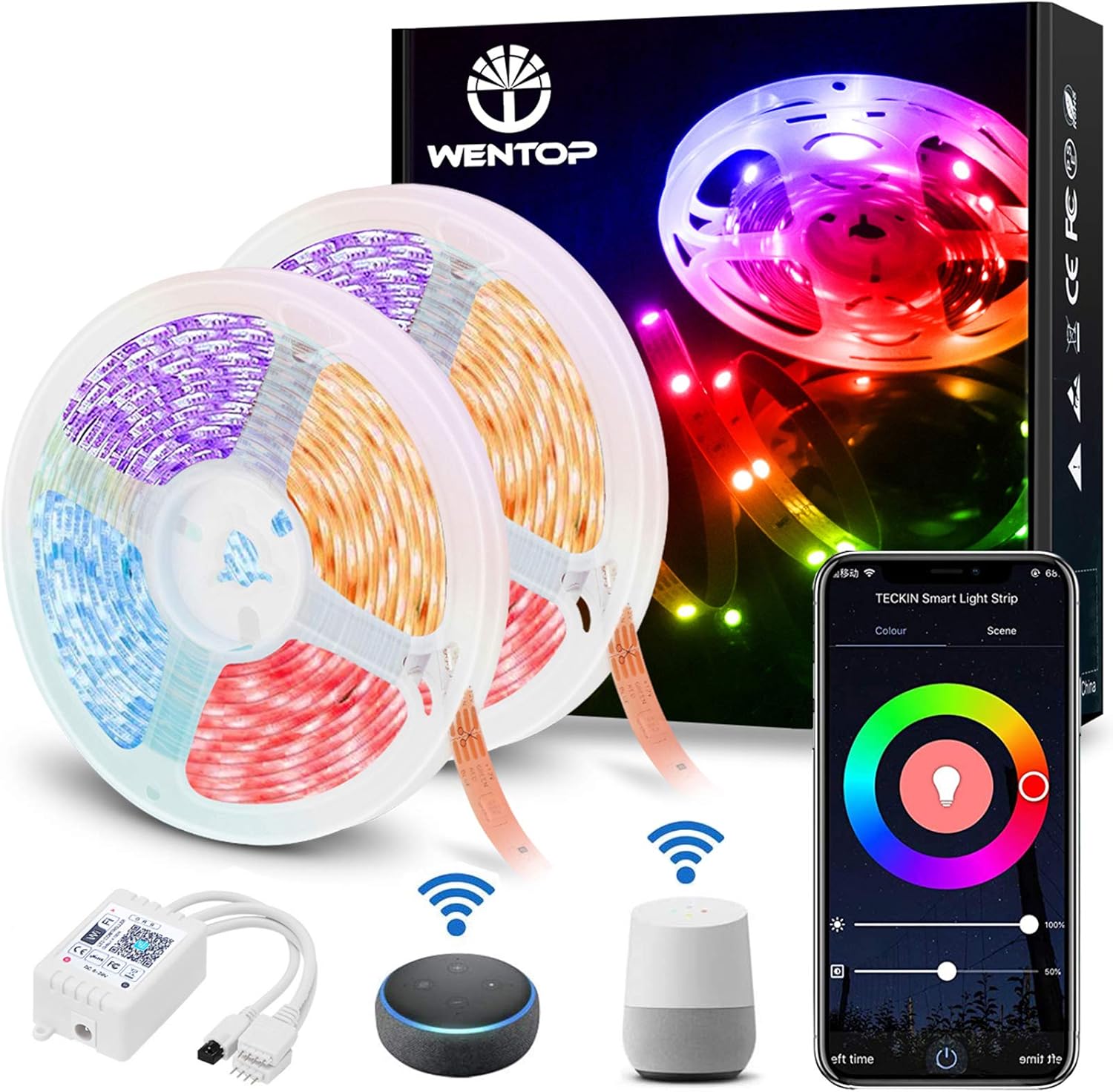 Wentop led strip lights are white, waterproof, flexible tape lights. 230cm (including power cord) weight : Wentop led strip lights, 65.6ft wifi wireless smart phone controlled strip light kit 5050 rgb 600leds lights with power supply rope light,working with android and ios system,ifttt. A wide variety of led strip options are available to you, such as color temperature(cct), lamp body material, and ip rating. Wentop led strip lights s.